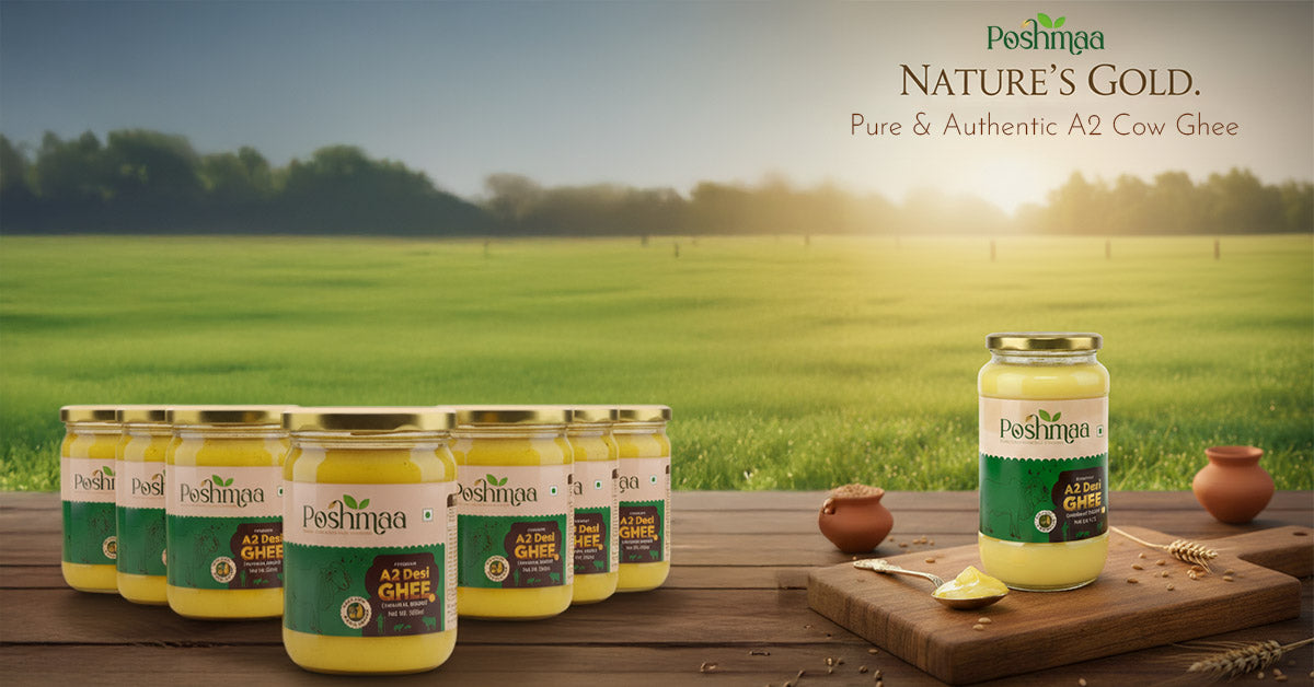 Experience mother-like nourishment with Poshmaa. Our A2 Cow Ghee brings purity, care, and wholesome goodness to every meal—just like home.